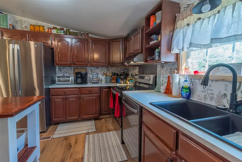 This 2002 model home offers 1,120 sq. ft. of comfortable living space with thoughtful updates and plenty of extras! Updates include; a covered porch addition, carport, and detached garage all newly constructed in the past year. Inside, you’ll find Pergo waterproof laminate flooring, a huge tiled double shower, and a converted bedroom now serving as a formal dining area. All appliances stay, making this move in ready. Enjoy the outdoors from the massive covered front porch with built in flower boxes or the spacious covered two-car carport which can easily be converted into additional living space if desired with 10 new windows that can convey. A standout feature is the 30x40 separate workshop/garage, complete with electric and water access. It’s perfect for hobbies, storage, or could be converted on one side into a 600 square foot apartment already framed and ready to be finished out. An attached pen is ideal for small animals. Located in the county but close to city limits, the property offers natural gas availability, lots of room for expansion, and the peaceful setting you’ve been looking for. This one is waiting for the perfect buyer...come see the possibilities!